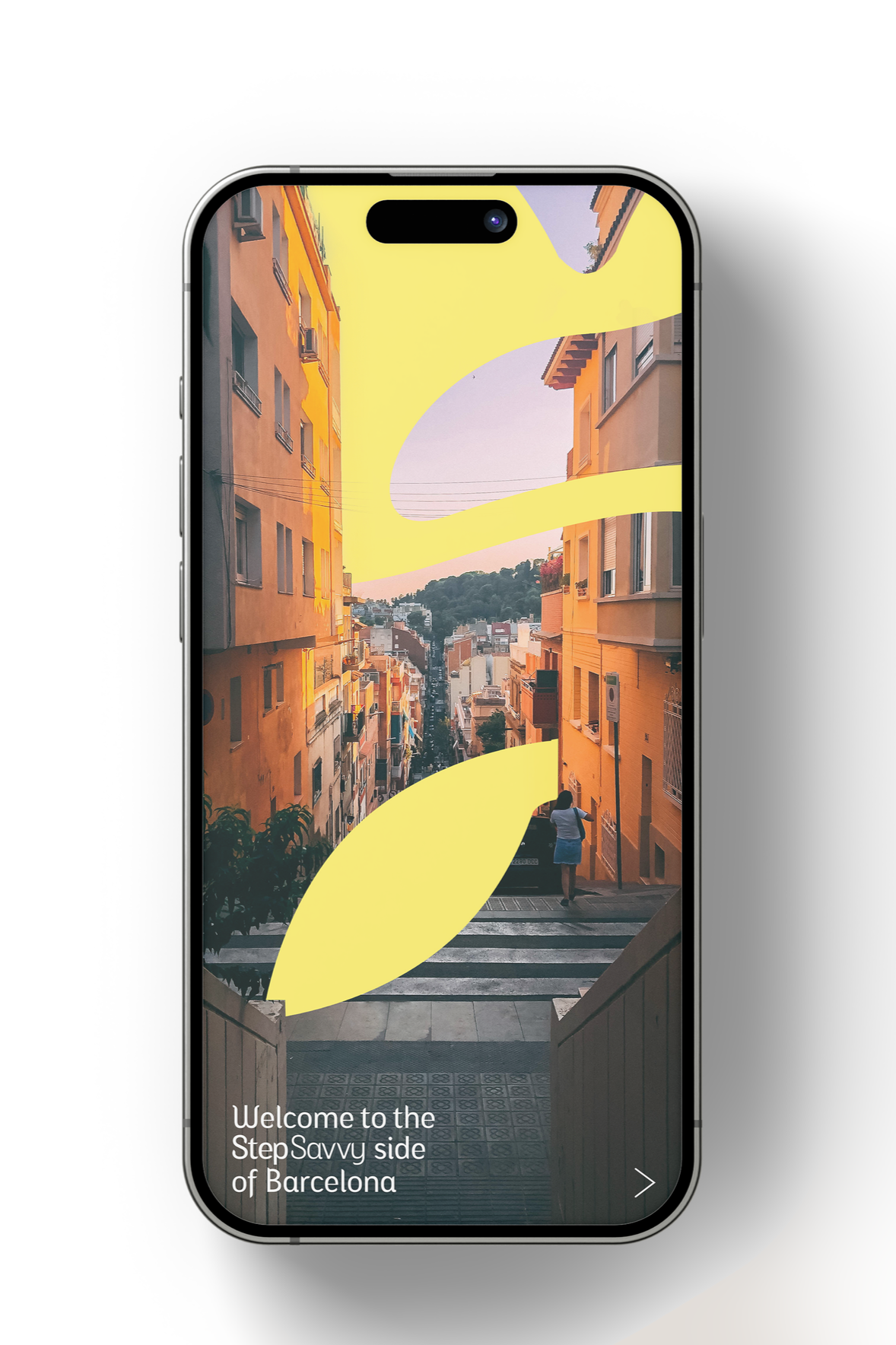 Local knowledge is brought to tourists via the StepSavvy app, guiding them around Barcelona in the safest possible way. Digital app features – such as recommended places to go and generated safe routes – communicate with environmental features to help tourists always stay savvy.